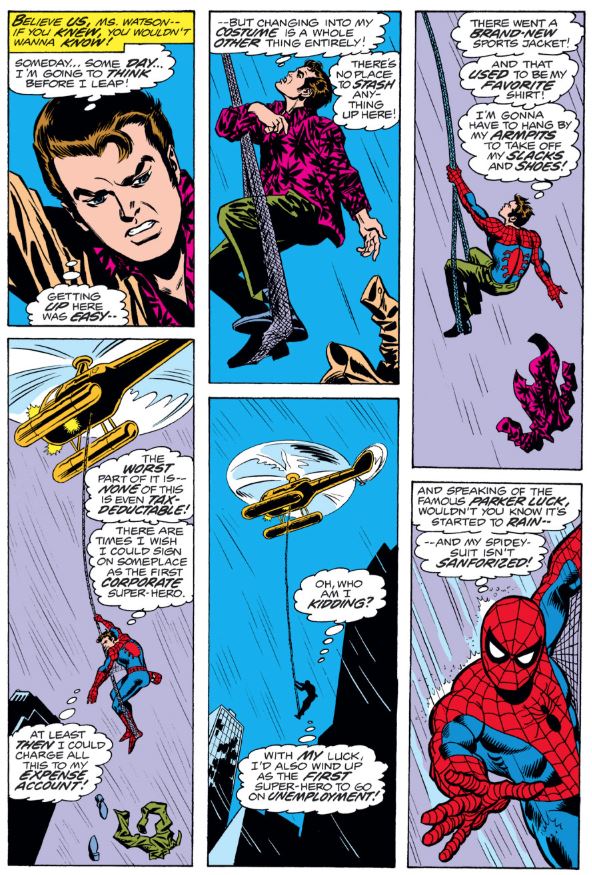Estamos ante unas viñetas que una por una todavía son muy clásicas, muy deudoras de los cánones originales de Marvel, pero donde la composición de página y la narrativa van evolucionando y tomando caminos más creativos e innovadores. No es que Conway o Gil Kane fueran unos puristas, pero es a partir de la llegada de Andru y, sobre todo, de Wein donde se comienza a notar la llegada de una nueva década en la narrativa. Era 1975, ya era hora, por otro lado. Este tebeo contiene una de mis páginas preferidas por la forma en que está contada y creo que hace muy memorable lo que en otro tiempo hubiera sido un tebeo muy poco digno de ser recordado.