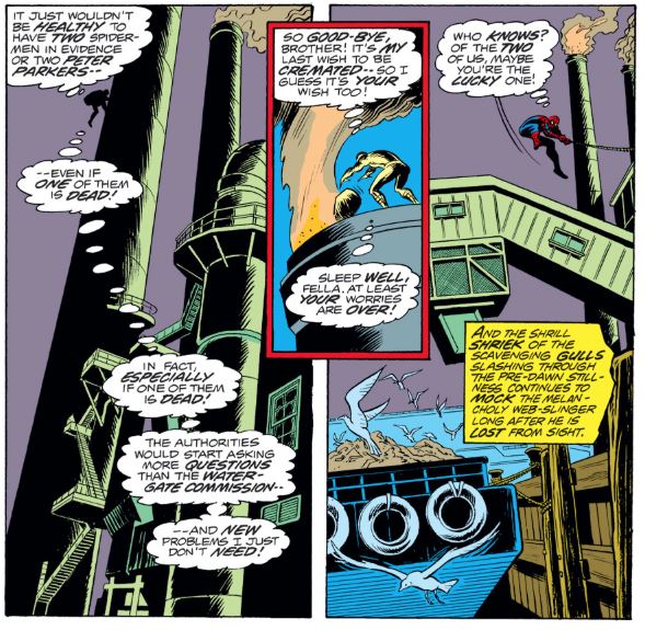 Pero además, The Amazing Spider-Man 151 contiene un elemento especial que lo hace extra, que lo convierte en uno de esos cómics imprescindibles de la historia arácnida, aunque de forma absolutamente accidental. Es el número que incluye la chimenea de Ben Reilly.
