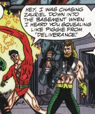 La carga taquiónica se ha concentrado en torno a este tercer número, el central, y en comparación el cuarto resulta más comedido. En este primer trabajo largo profesional de ROB! no está acreditada ninguna colaboración en el guión, pese a que en todos sus trabajos posteriores ha intervenido en este aspecto del proceso creativo (y cuando no estaba de acuerdo con el guionista, dibujaba lo que le daba la gana y que el escritorzuelo apechugase, ya que sabía tanto). Por eso me atrevo a aventurar que aunque no conste en los créditos, el bueno de ROB! debería aportar su grano de arena en algún momento, es imposible contener tanta energía. Y hasta me atrevo a decir que su influencia en la historia se empieza a notar a partir de esta escena (o eso o los Kesel resulta que son dos genios y nunca más lo demostraron)
