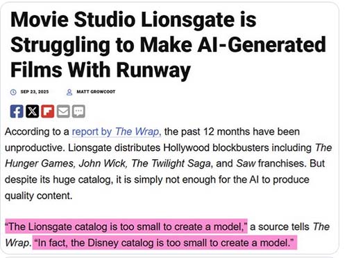 Y hoy en dia el tema ya no es si una IA puede generar una secuencia de video realista sino, AY MECACHIS, que todo el catálogo de tu productora no basta para que plagie lo suficiente ENTRENARLA para hacer una película entera.