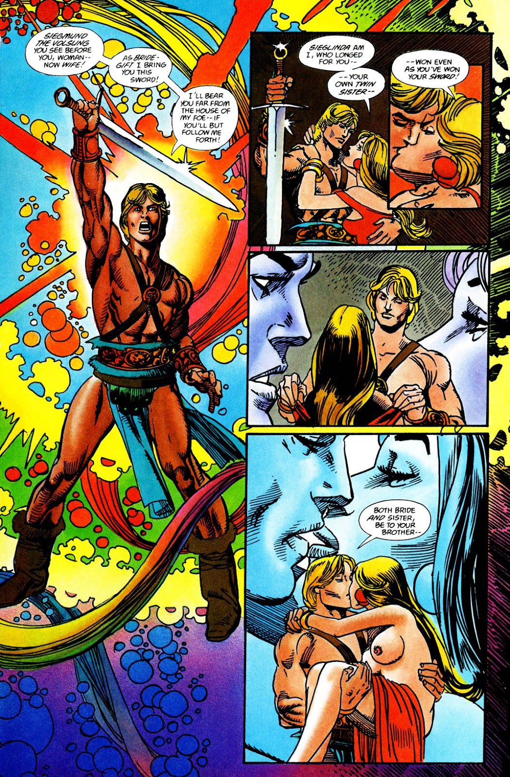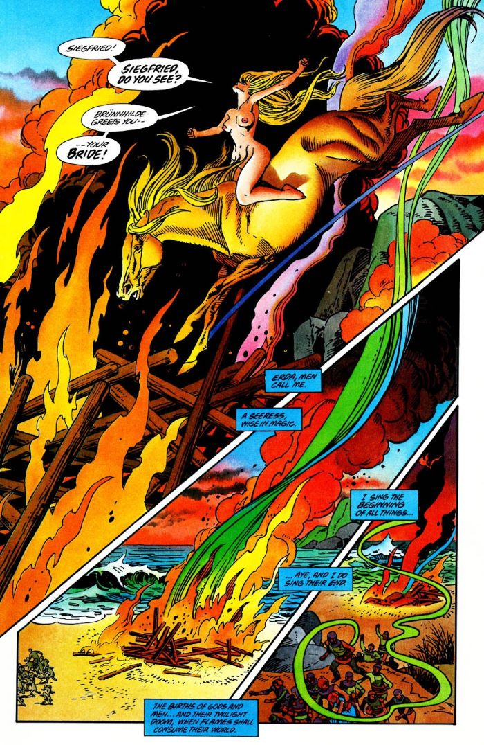 Por supuesto habrá quien piense que en realidad esto era una excusa para hacer algo más cercano a… no sé… ¿el cómic europeo lleno de tetas? ¡Por supuesto que no! Igual que no tiene nada que ver con He-Man. Es una aproximación al público popular de las óperas basadas en leyendas. ¡Eso es todo, pervertidos!